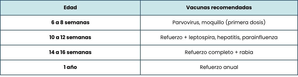 Este esquema puede variar según la zona, el estilo de vida y la salud del cachorro: